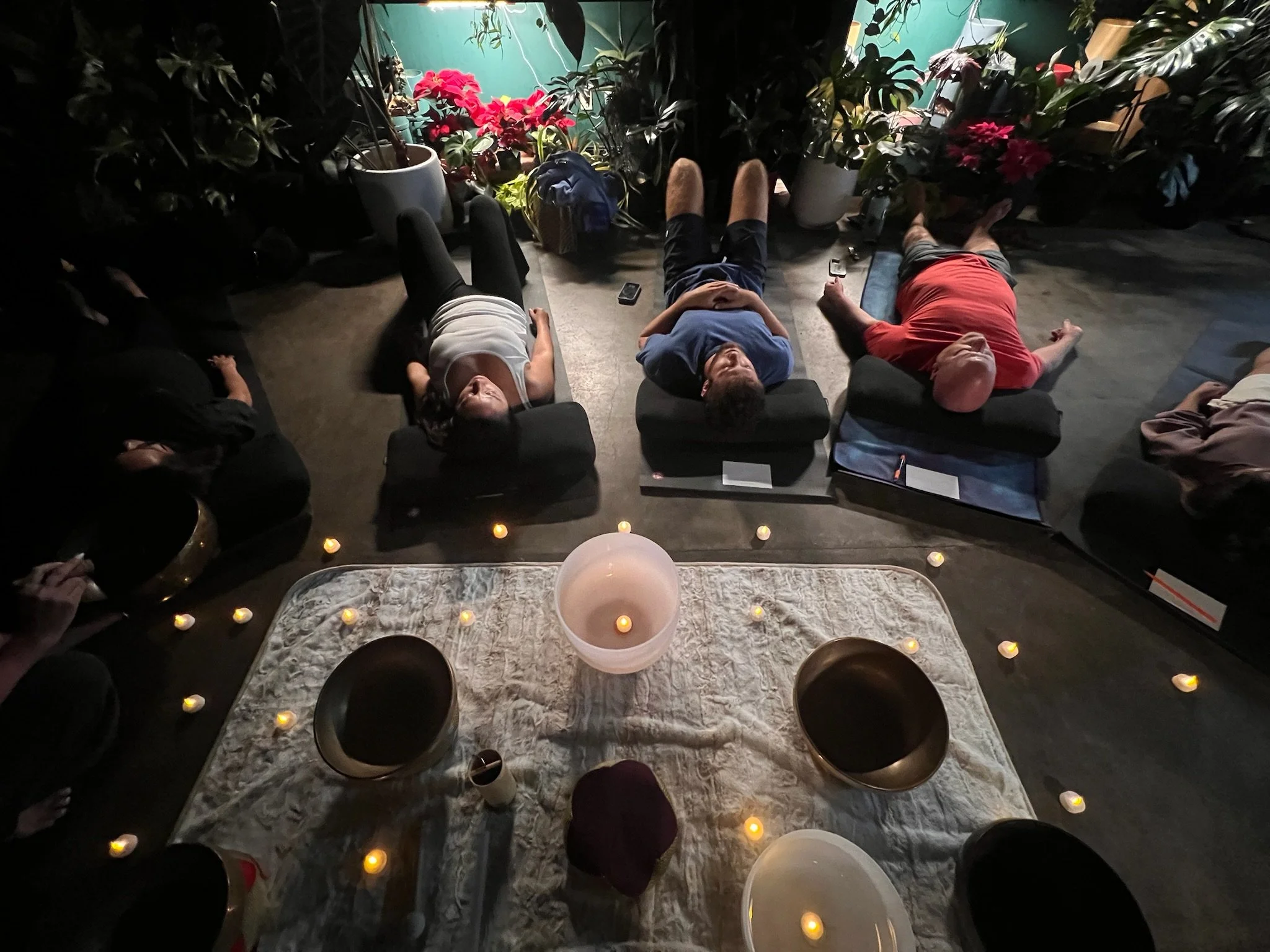Settle into gentle restorative postures and quiet breathwork, then drift into an immersive sound bath. Traditional Tibetan singing bowls will be placed around the body (and on the body with consent) to soften mental chatter and support deep calm. Expect spacious stillness, rest, and renewed clarity.